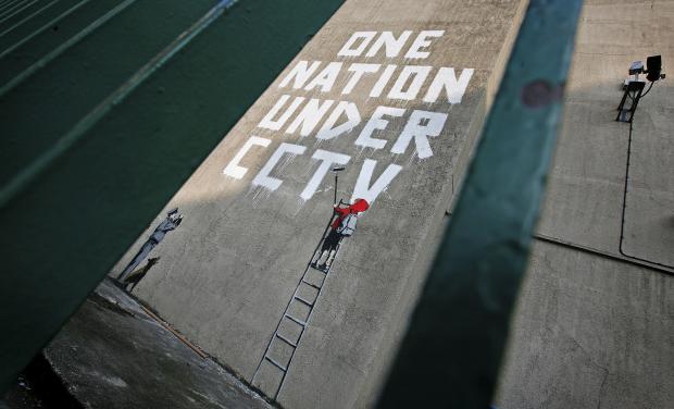 The mural showed a red-hooded little boy on a ladder rolling the message up the wall, “One nation under CCTV”, while a police officer and a brown dog watched on. Apparently Big Brother didn’t like the message, and the mural was removed in 2011. GRAFFITI: a child dissident with a spray paint can, TRASH. Tally mark, I got it.
