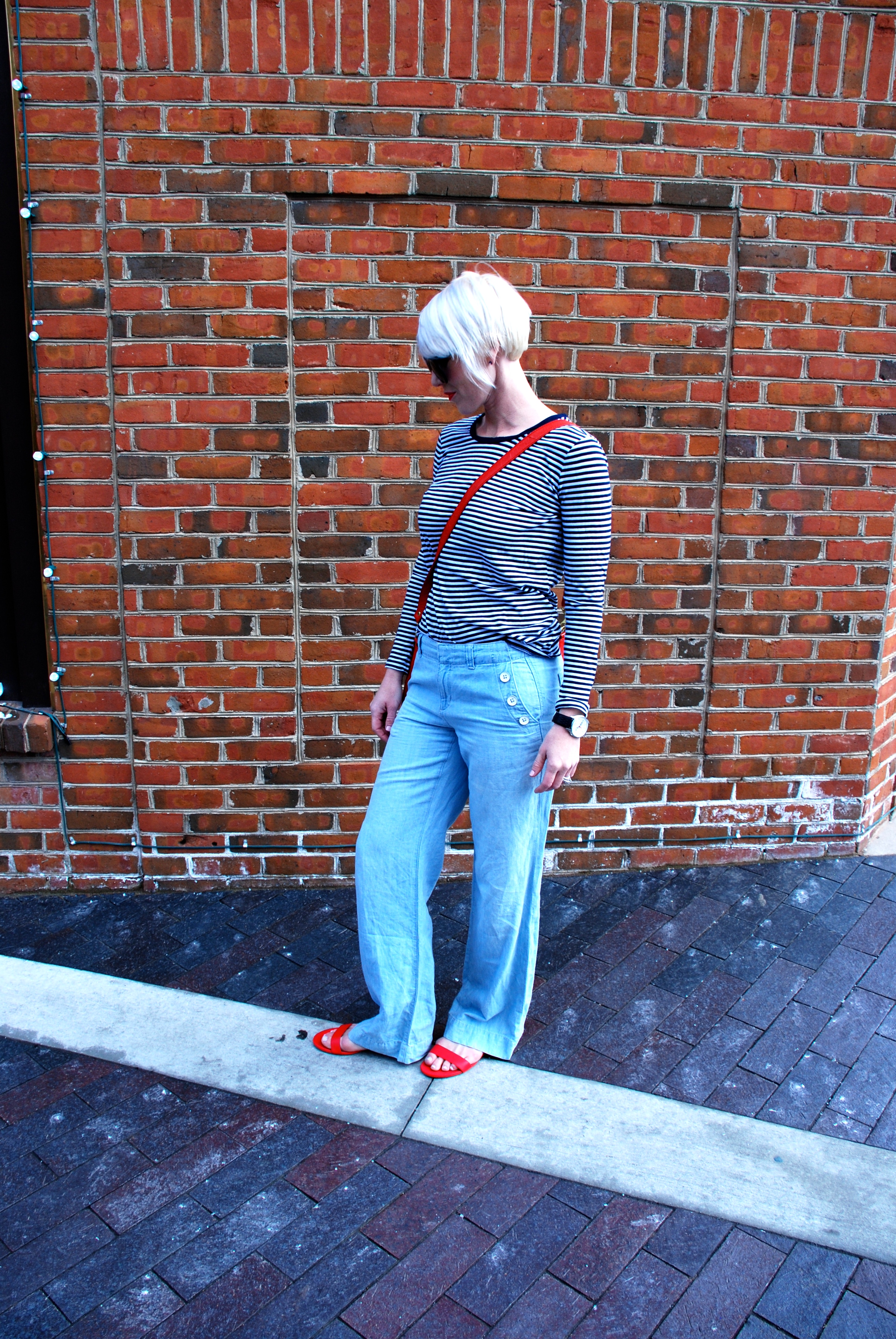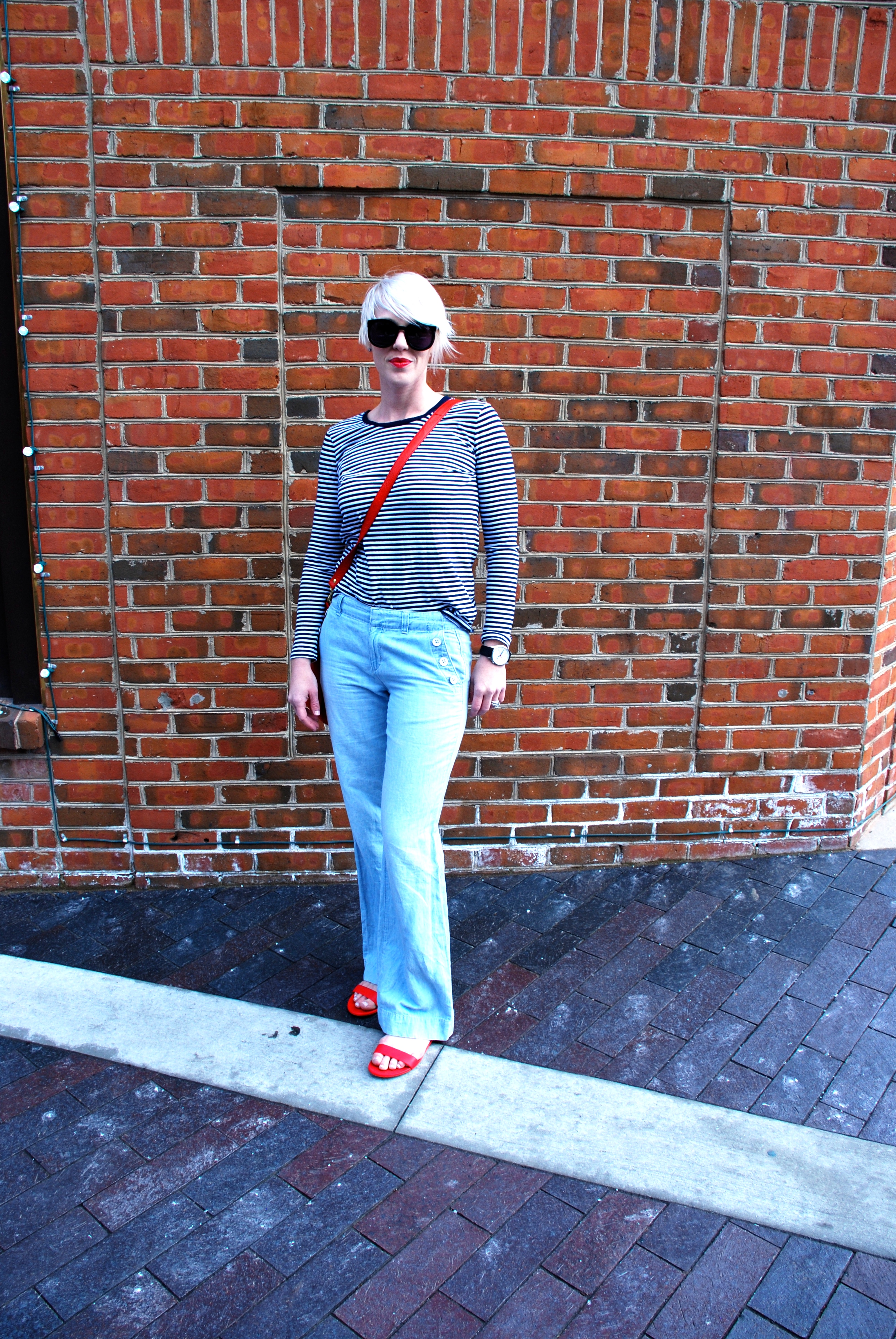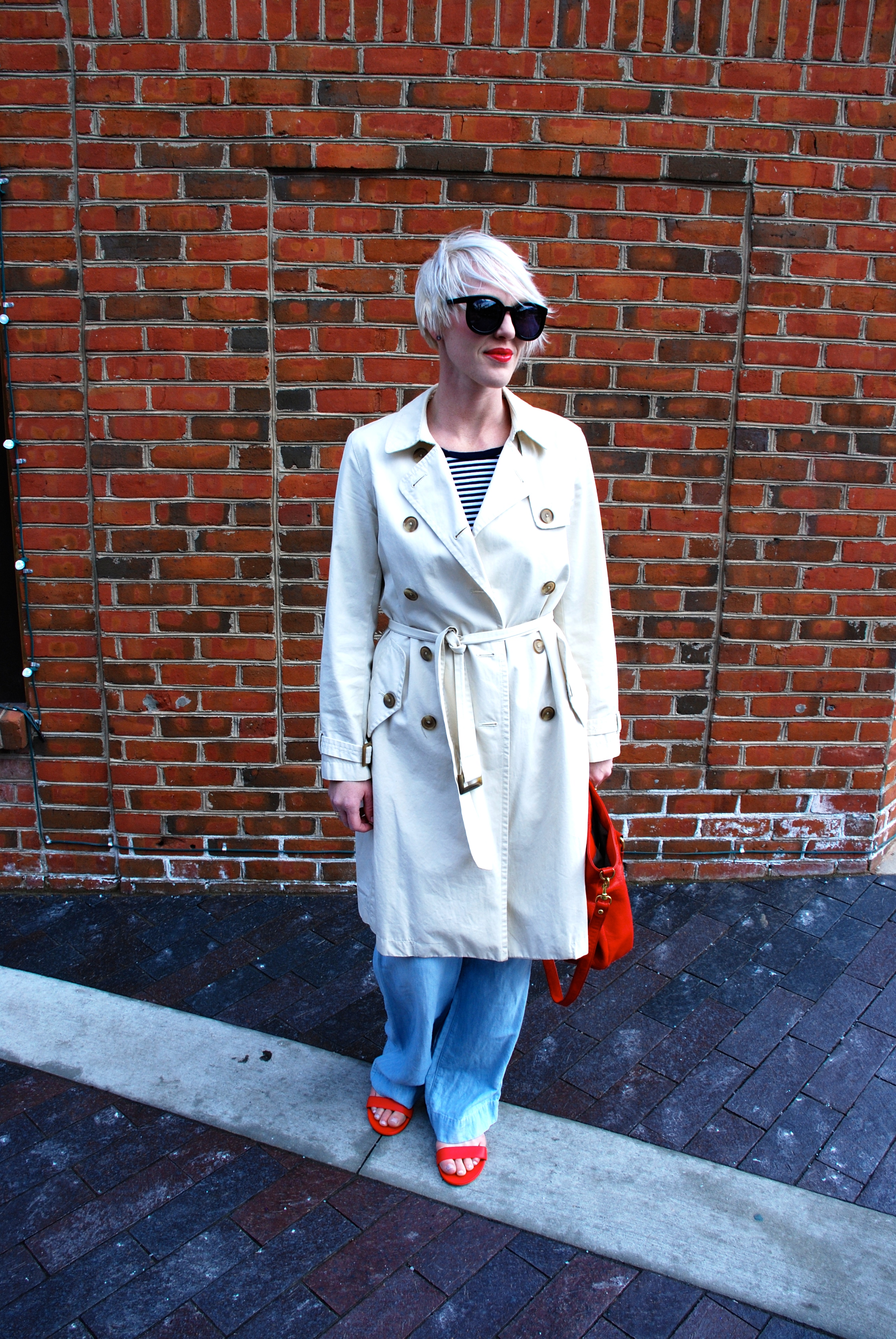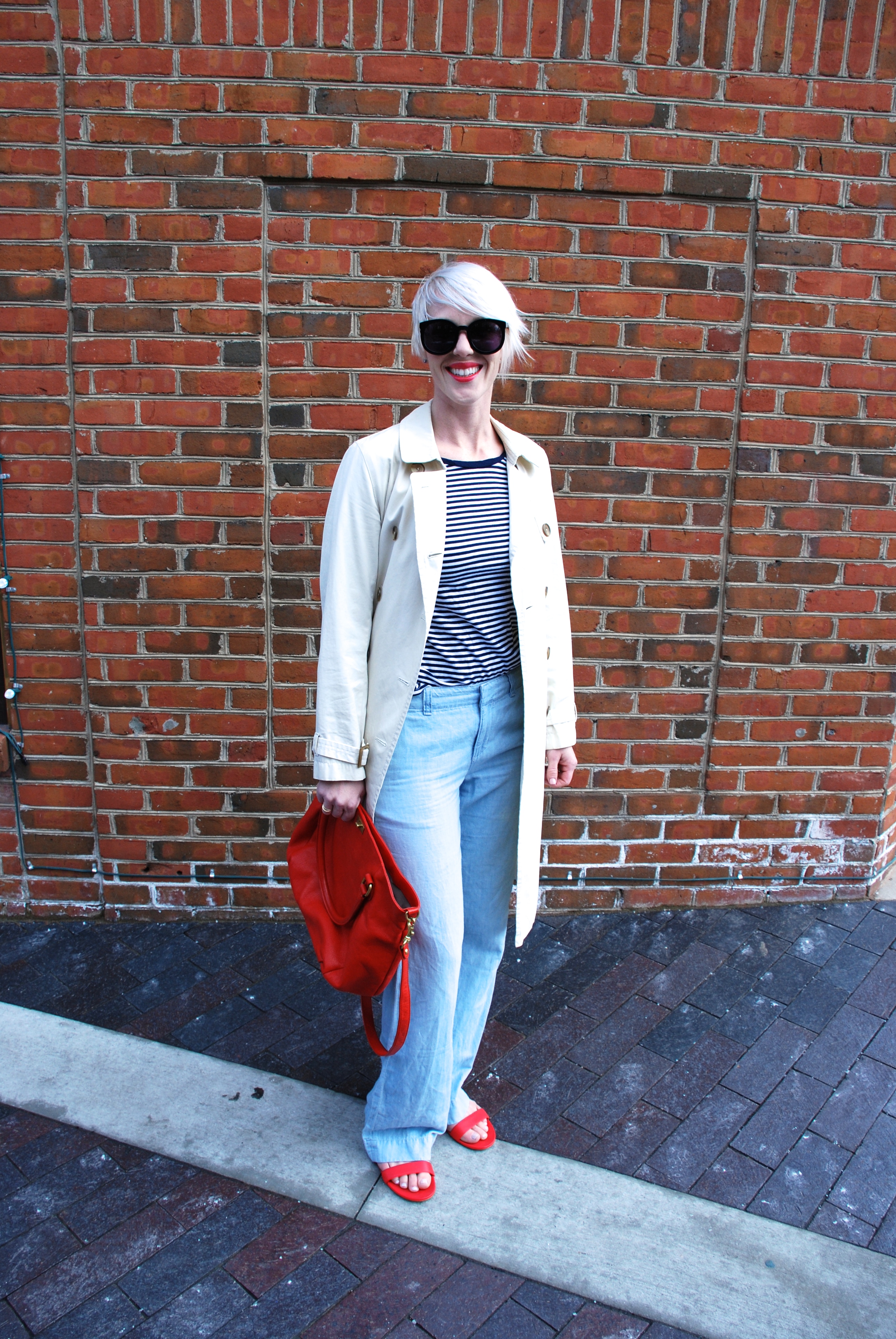 This outfit is a perfect compliment to the season and has some of my favorite elements. 1- Trench, 2- Stripes, 3- Red, 4- Sandals, 5- Linen chambray pants. Are you feeling Spring? How are you dressing it up?