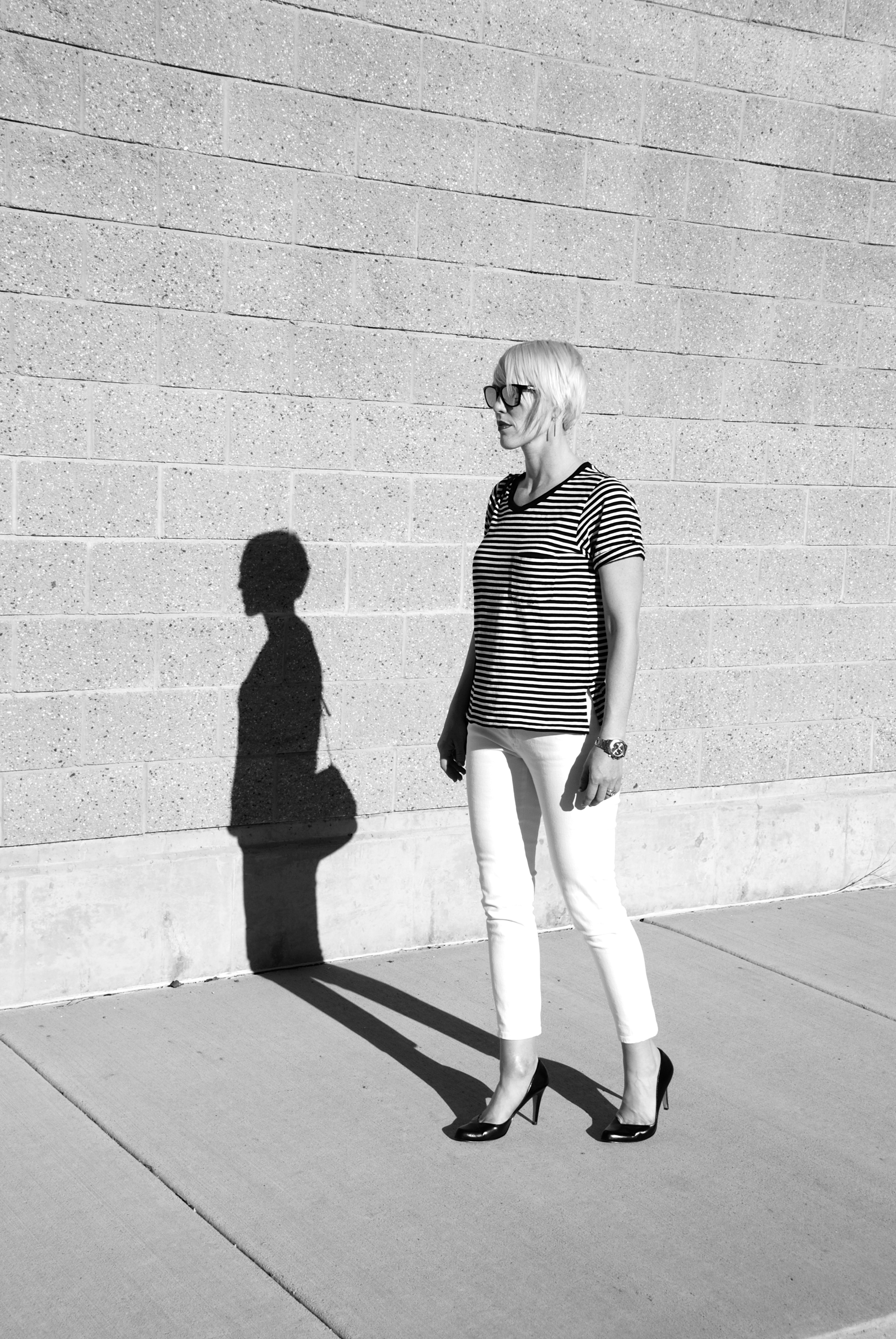 Needless to say, this outfit has every thing you could wish for in French fashion circles if you ask me. Some stripes, some cool, and some classic heels.
