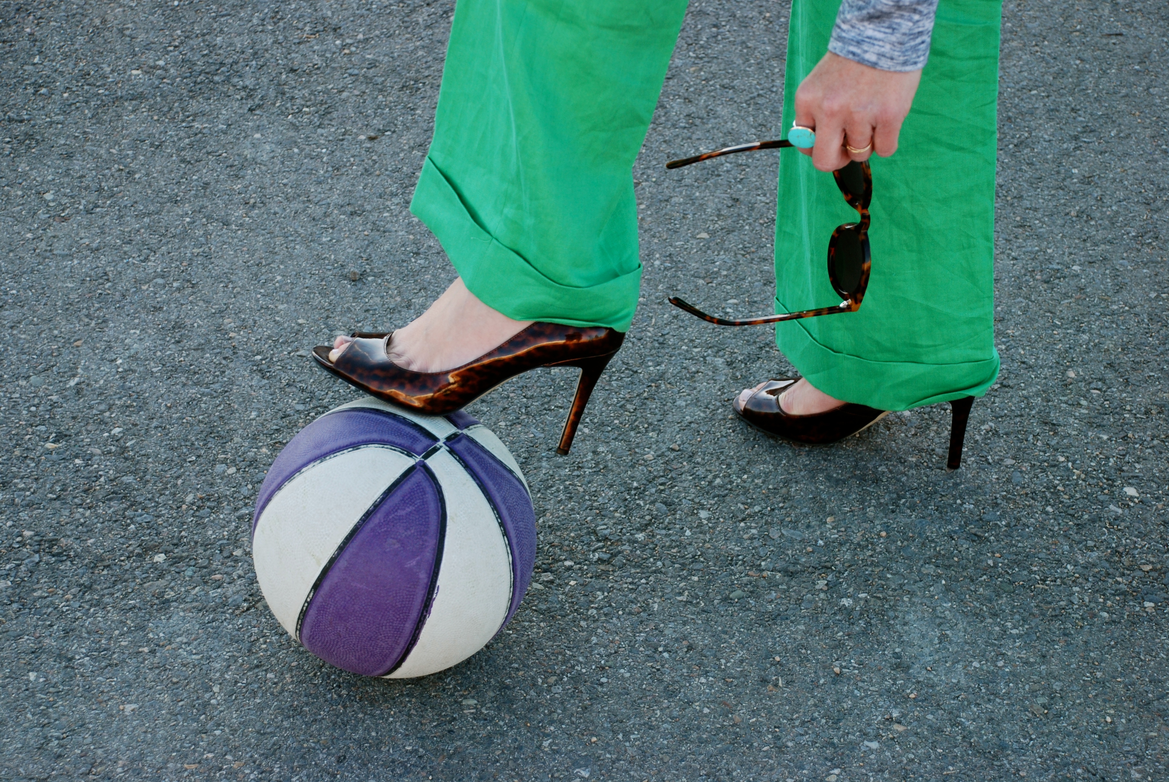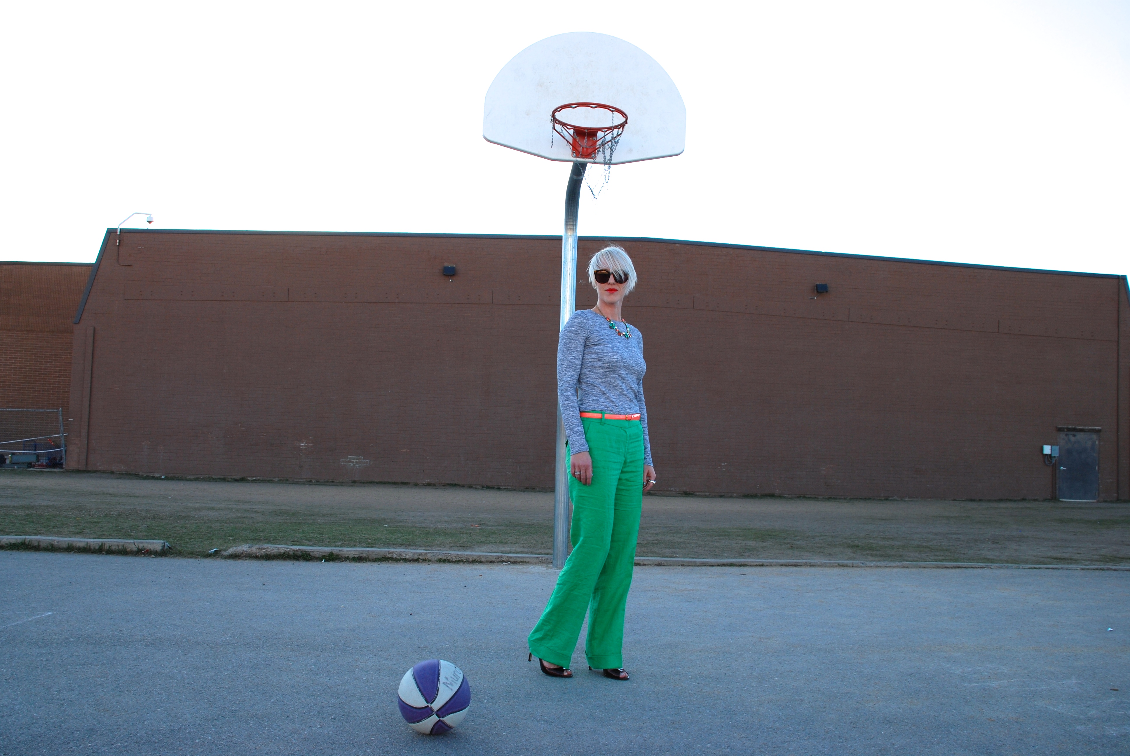 These pants are worth talking about for their color alone. That hit of green is simply lush. Just add palm trees and an umbrella drink for an outfit escape! Here’s to after school games, and slow evenings that slide toward summer.