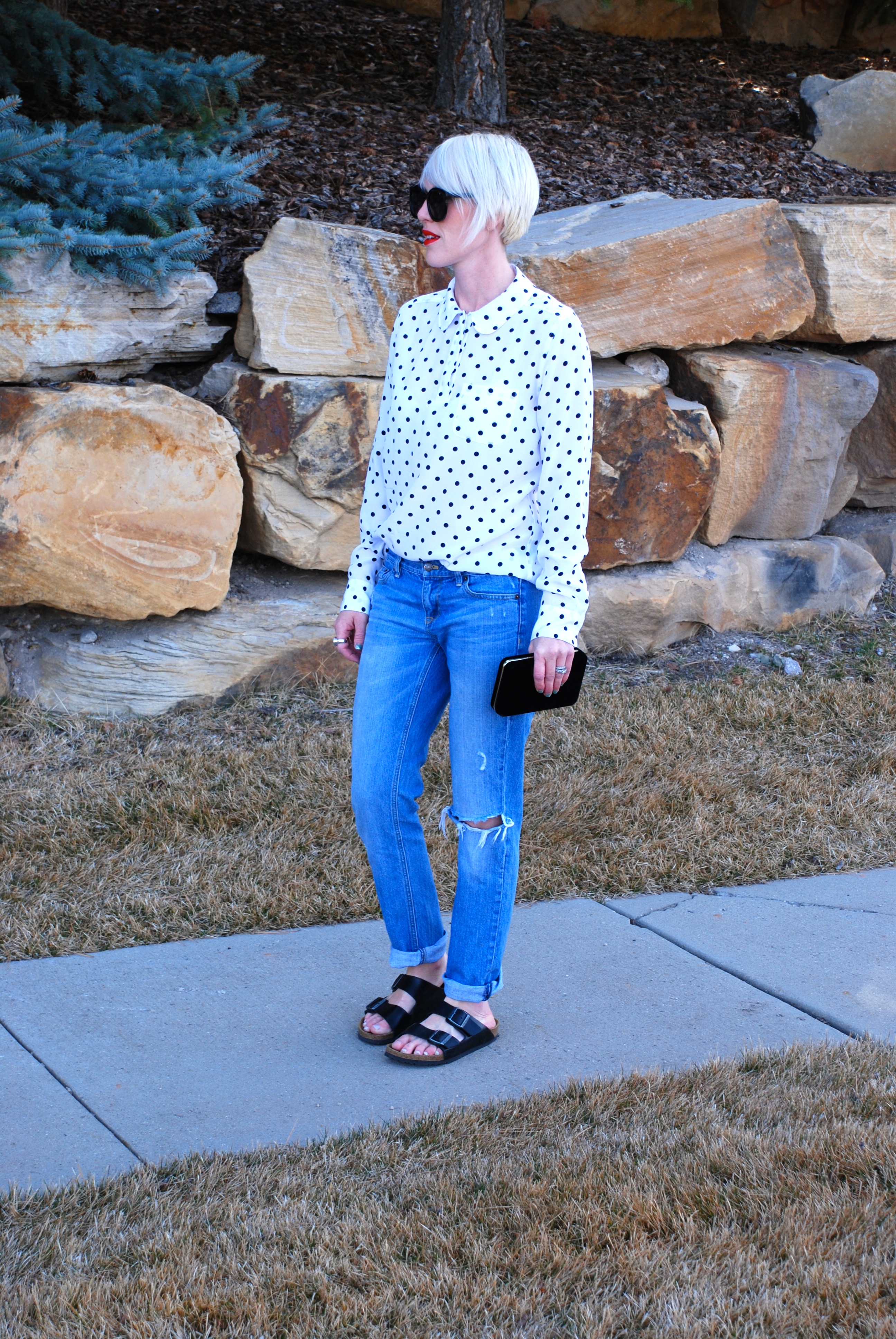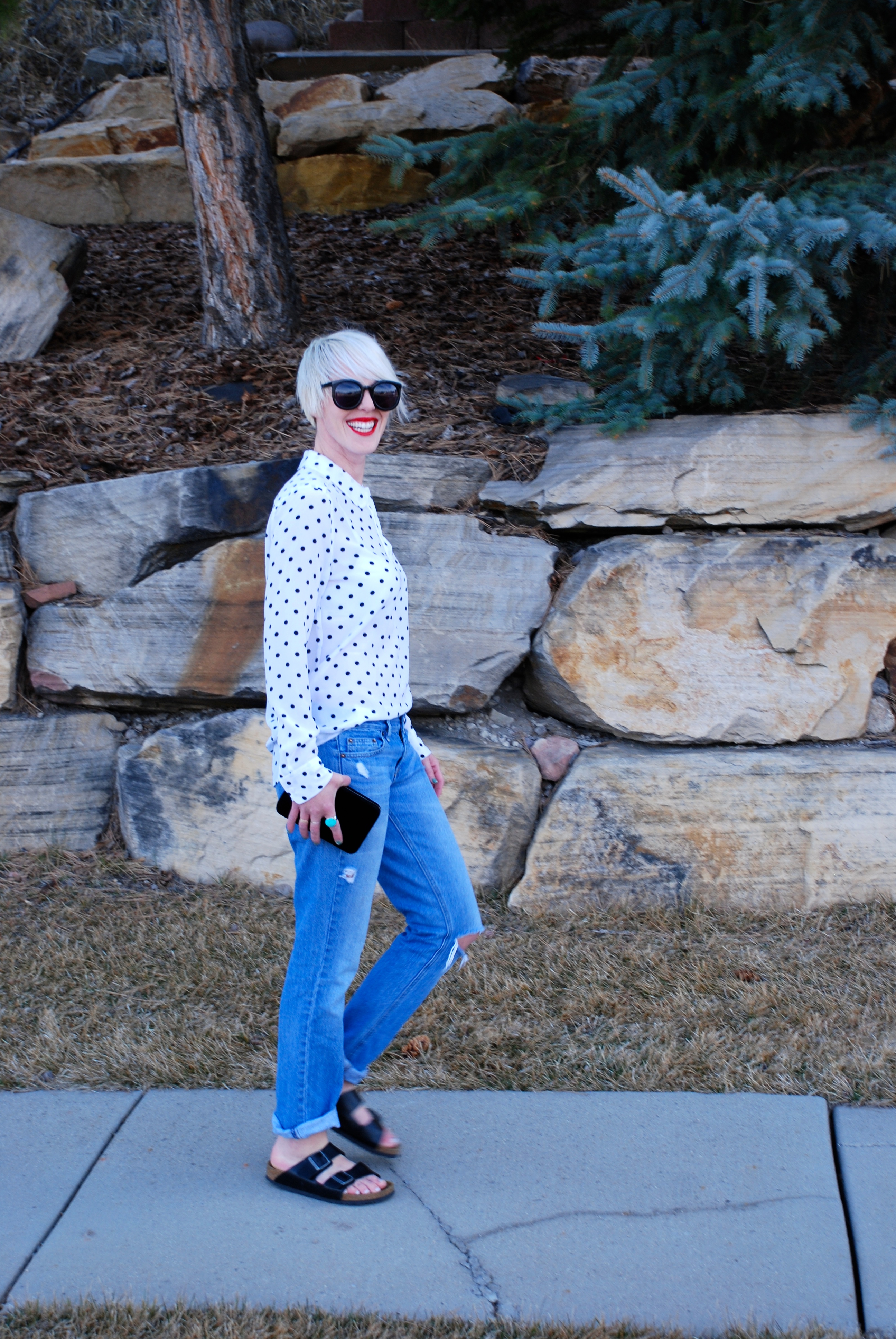Peppy, jazzed up, just right! In the case of this rig I’m pretty sure it has something to do with the polka dots. Playful, dressed up, and casual all in one look. I’m loving it. What gets you going on a Tuesday? Maybe it’s not what you wear, but a favorite song you have on repeat, or a funny conversation you’ve had with one of your kids. Maybe it’s a play you saw last night, or a movie that really moved you.