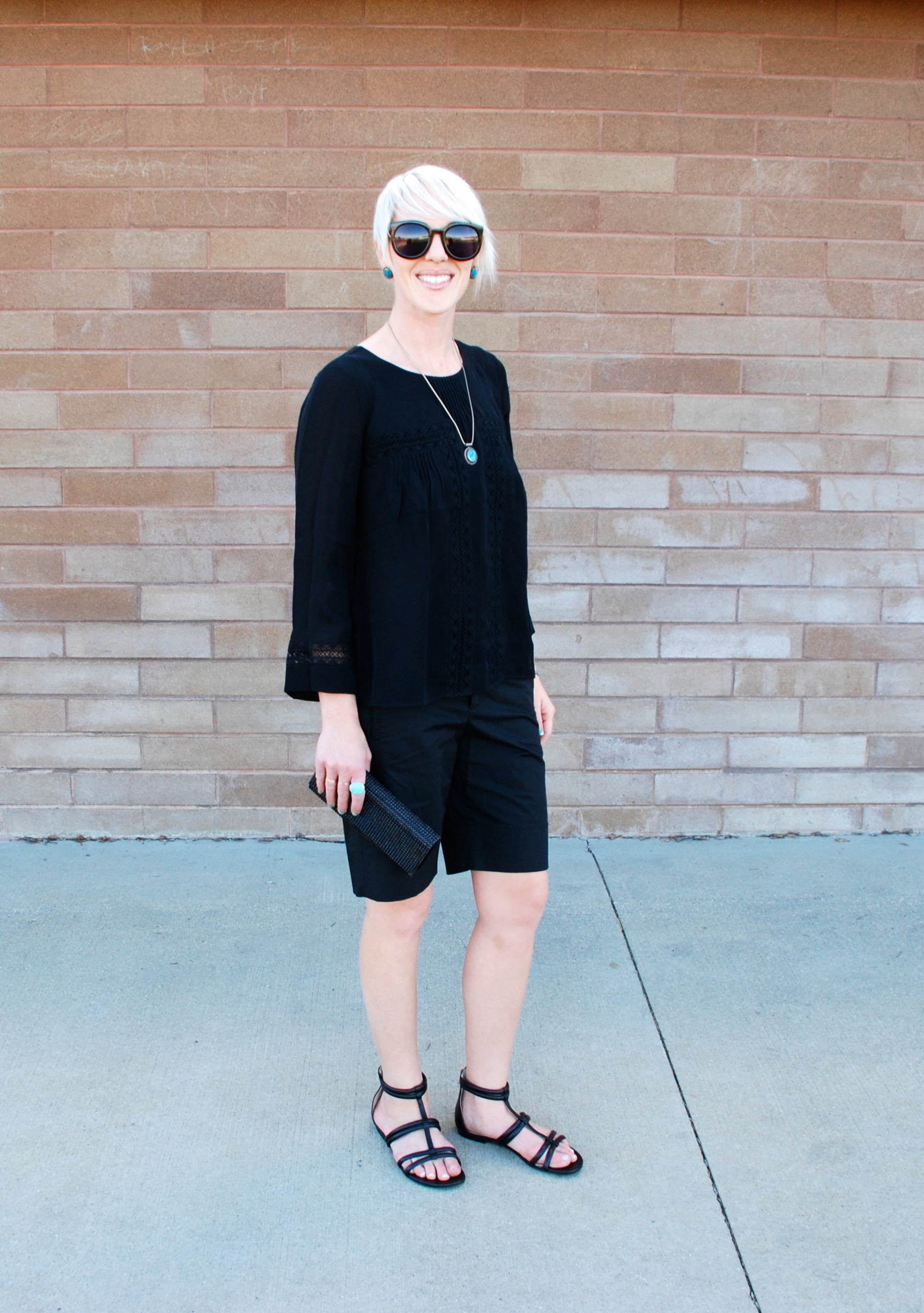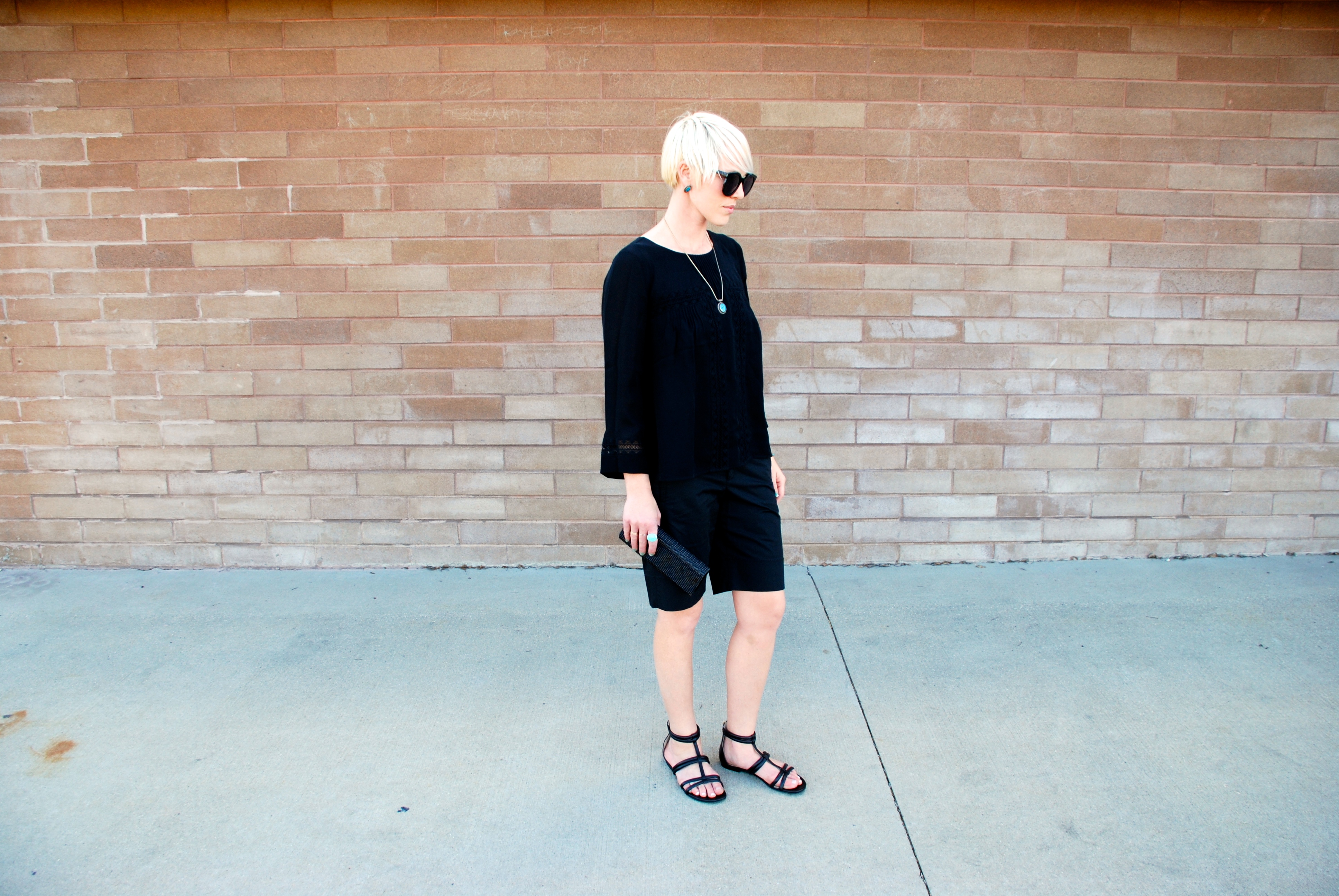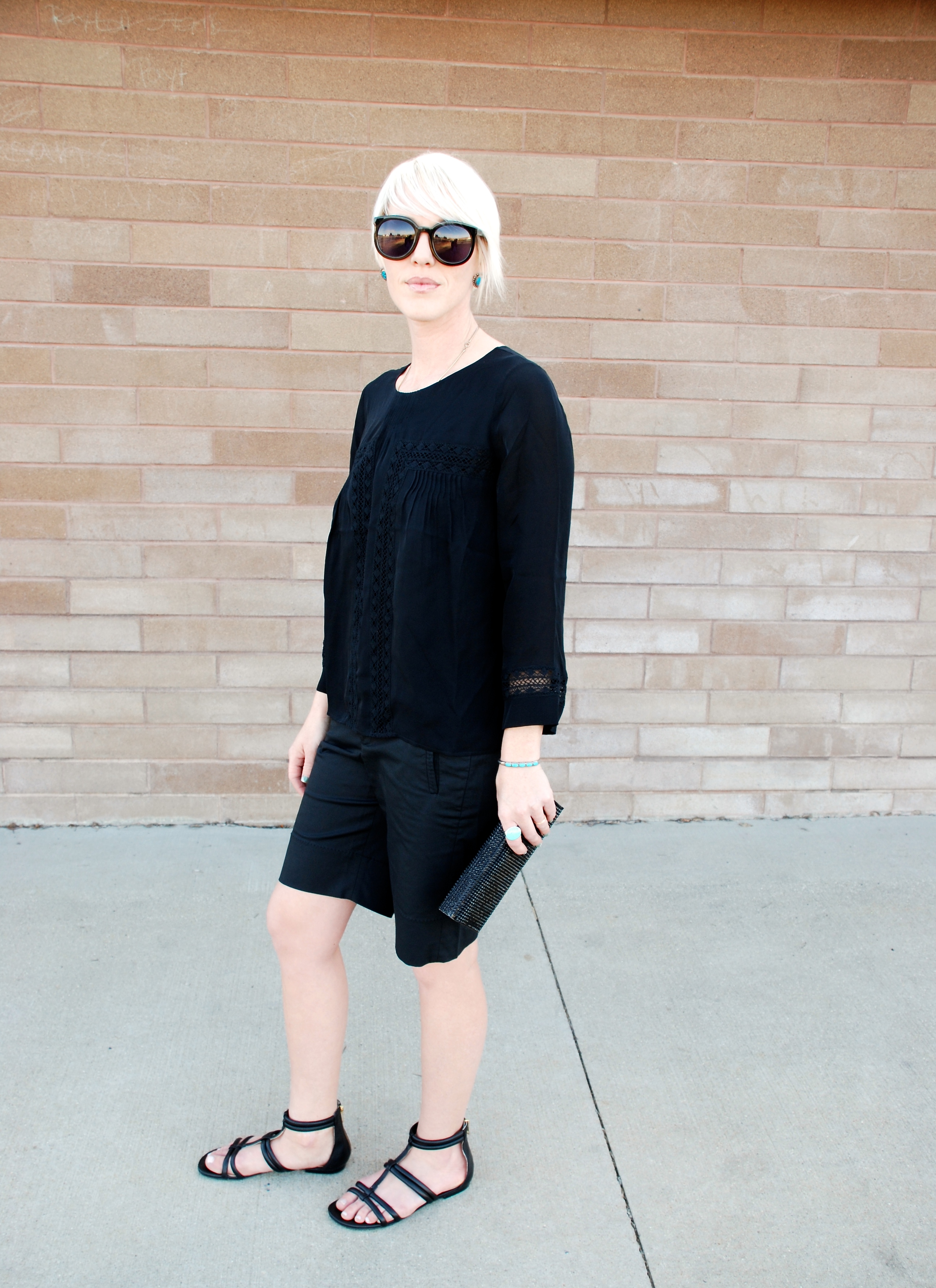 Sometimes you just have to tap into the black. This outfit is just about as easy as they come. The great thing is you can add personal touches– the texture of a fabric, a panel of lace, the length or cut of short or pant, and accessories.