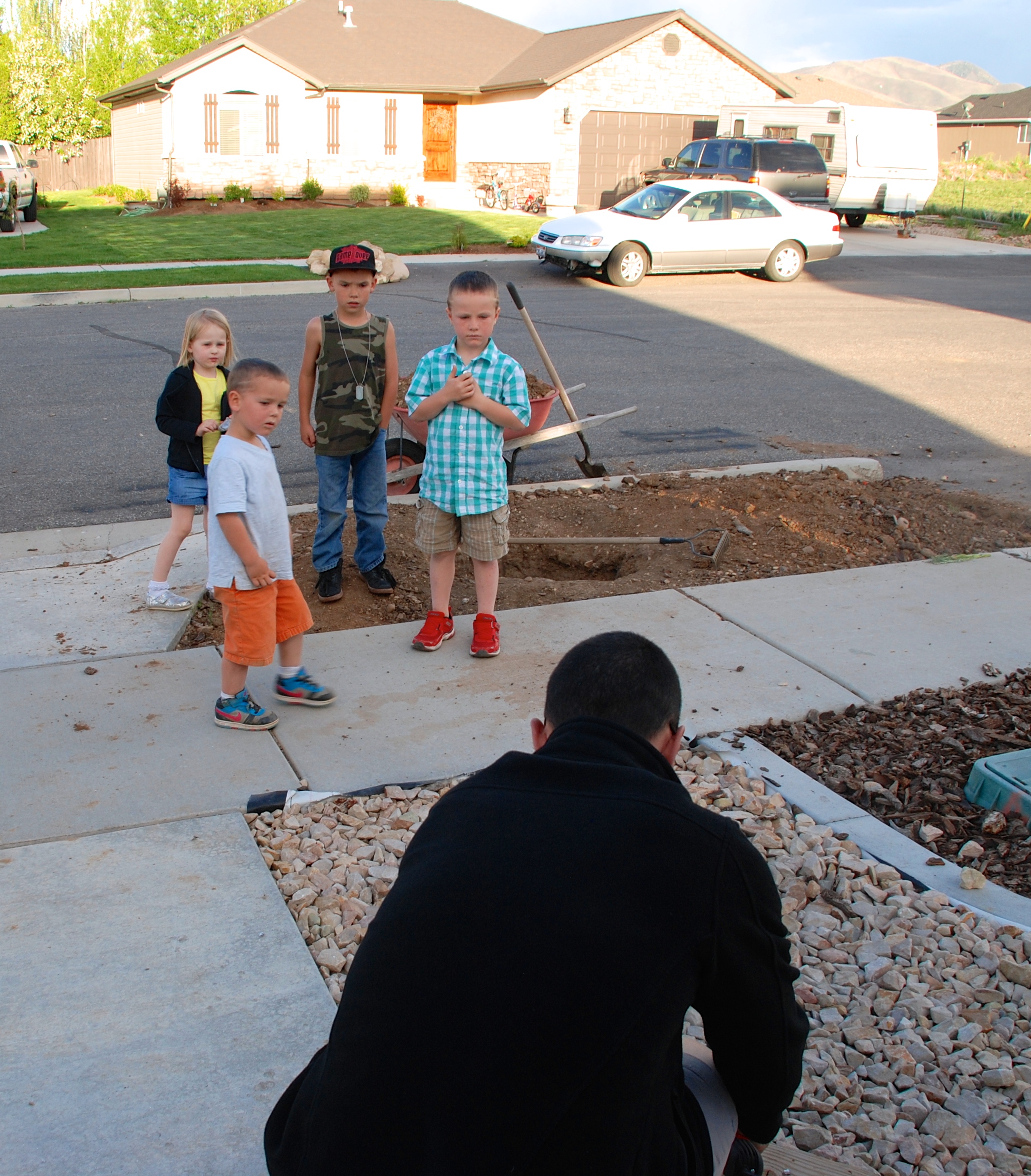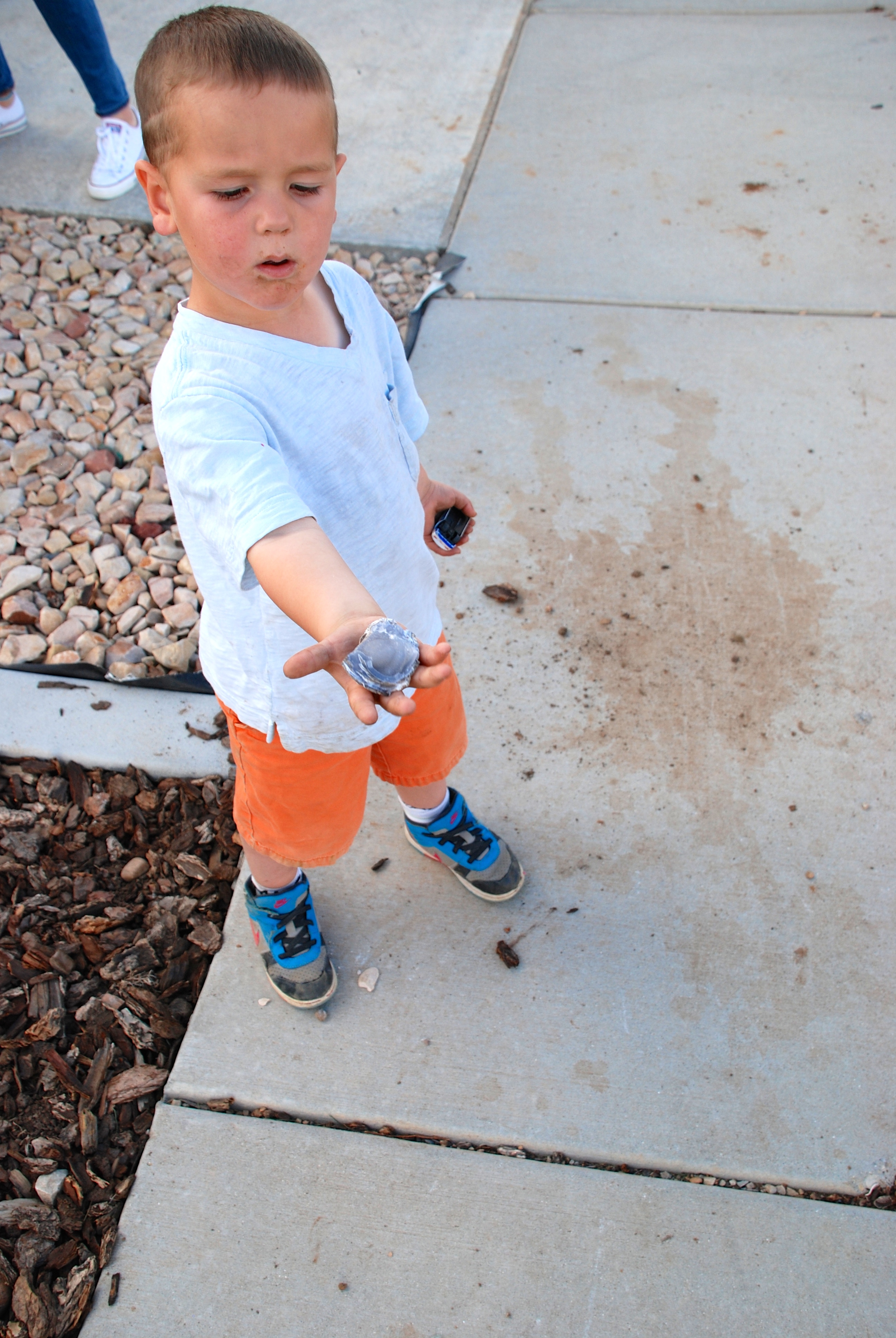 My wonderful hubs got out his dremel and a small hand grinder. Because we didn’t have enough protective eyewear for all of the kids, cousins, and neighbor friends, we made them stand back and watch from afar. This didn’t seem to dampen their excitement one bit!