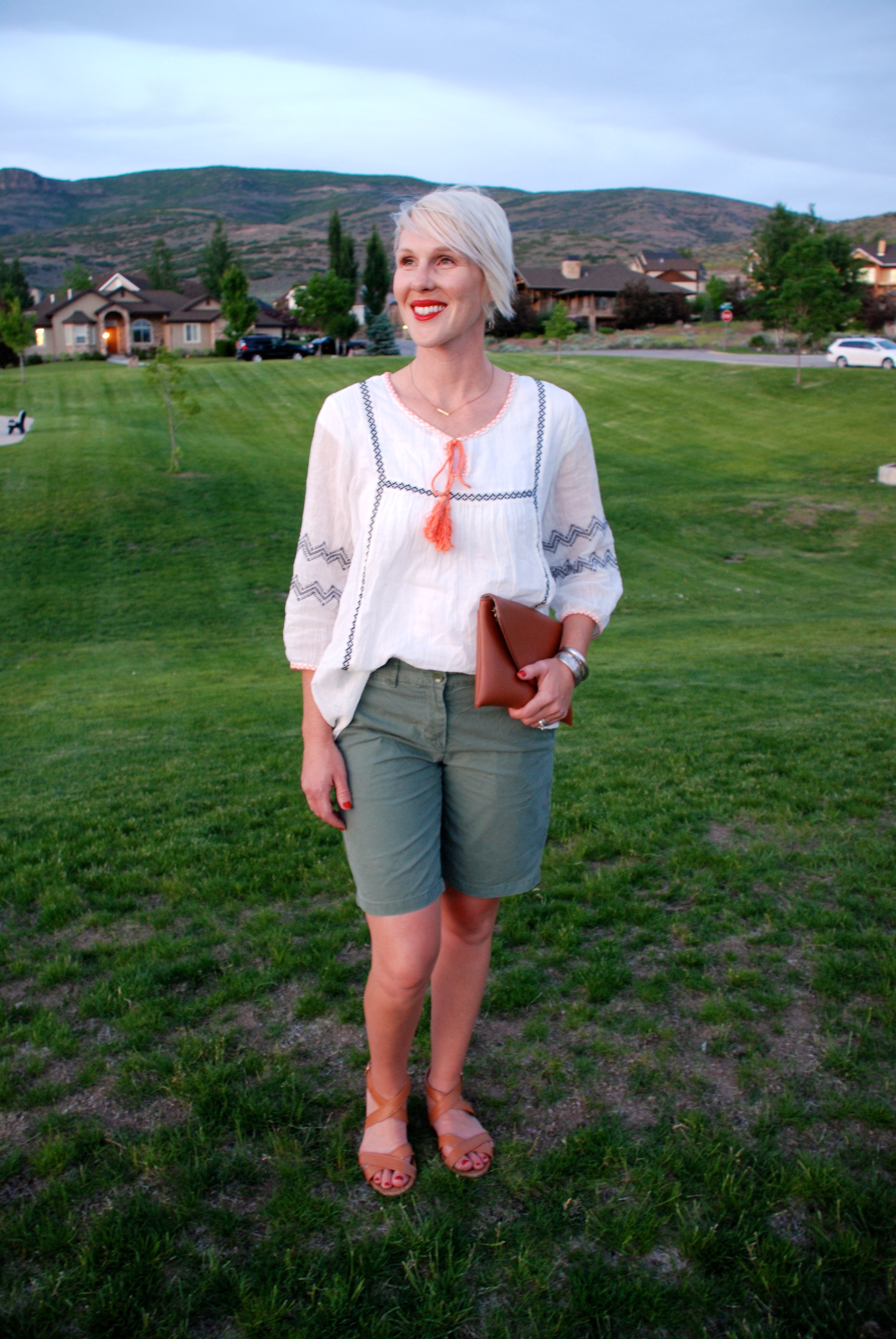 This outfit has been a summer go to as the top is truly a throw on and go number. Easily dressed up with some bangles or a bracelet cuff. I’ve already worn it with a pair of neon jeans, holy shorts, and the army green boyfriend shorts seen here.