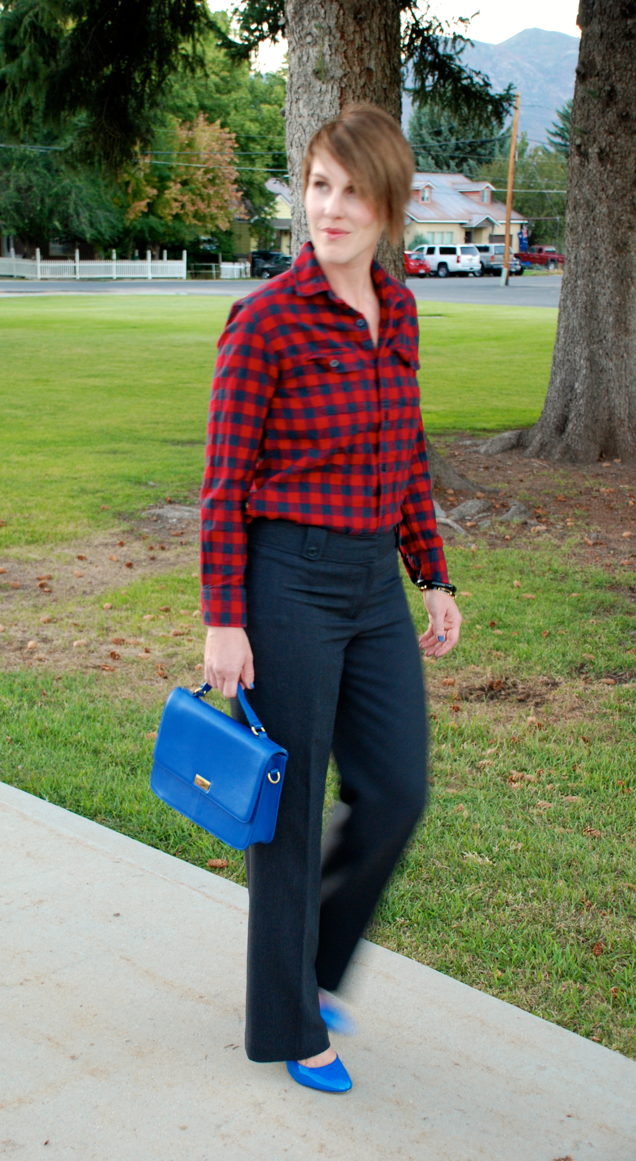 Enter the soft-wash shirt from J.Crew. The button-down makes this shirt office appropriate, just add dress pants and heels. Speaking of heels, no one says you have to choose a standard black. What about subbing your those classic black heels with a colorful option? These blue suede babies almost identical to the ones seen here and are both adorable and affordable!