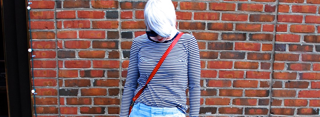 You’ve heard my feelings about the stripped sister to this white in shining cotton shirt here. But let me say, I may have to get me some of this long, dreamy white tail soon! The cotton on this shirt is a good quality. Not heavy, but not too sheer. It’s an instant classic, even with the lengthened shape.