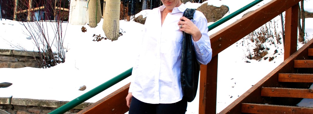 Now I’ve already admitted to raiding my man’s closet. One thing that I reach for over and over are HIS white shirts. They create a similar affect to the shirt mentioned above, BUT they usually have a more boxy, classic fit. No women’s tailoring over there, or not often. Even his slim fit shirts are just enough oversized that the look is at once polished and sexy, a little business a little wardrobe play. Very nice. Try it out and tell me what you think!