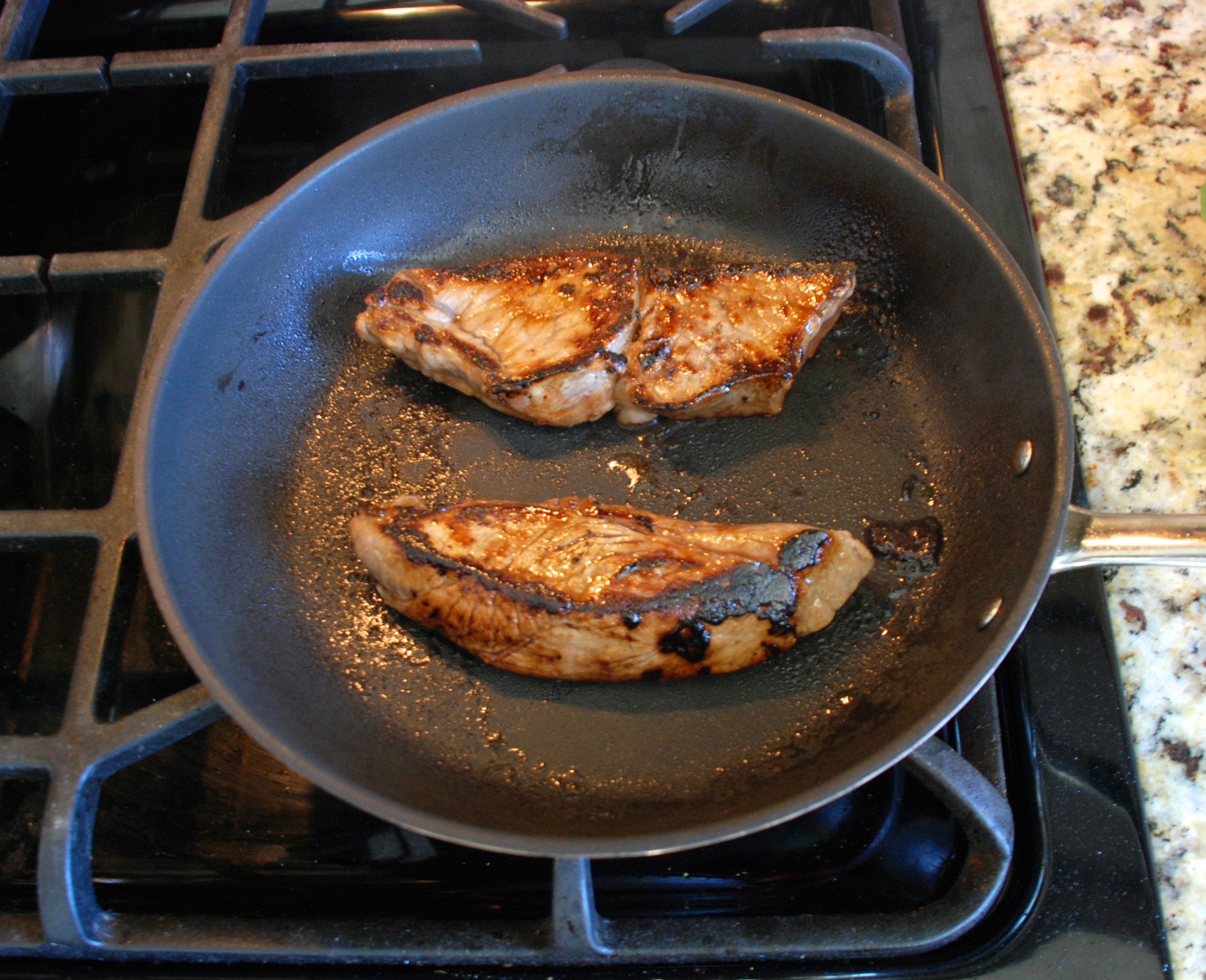 Meanwhile, heat a large skillet and add the steak. Cook the steak 3-4 minutes each side, or to your desired doneness. Discard the excess marinade.