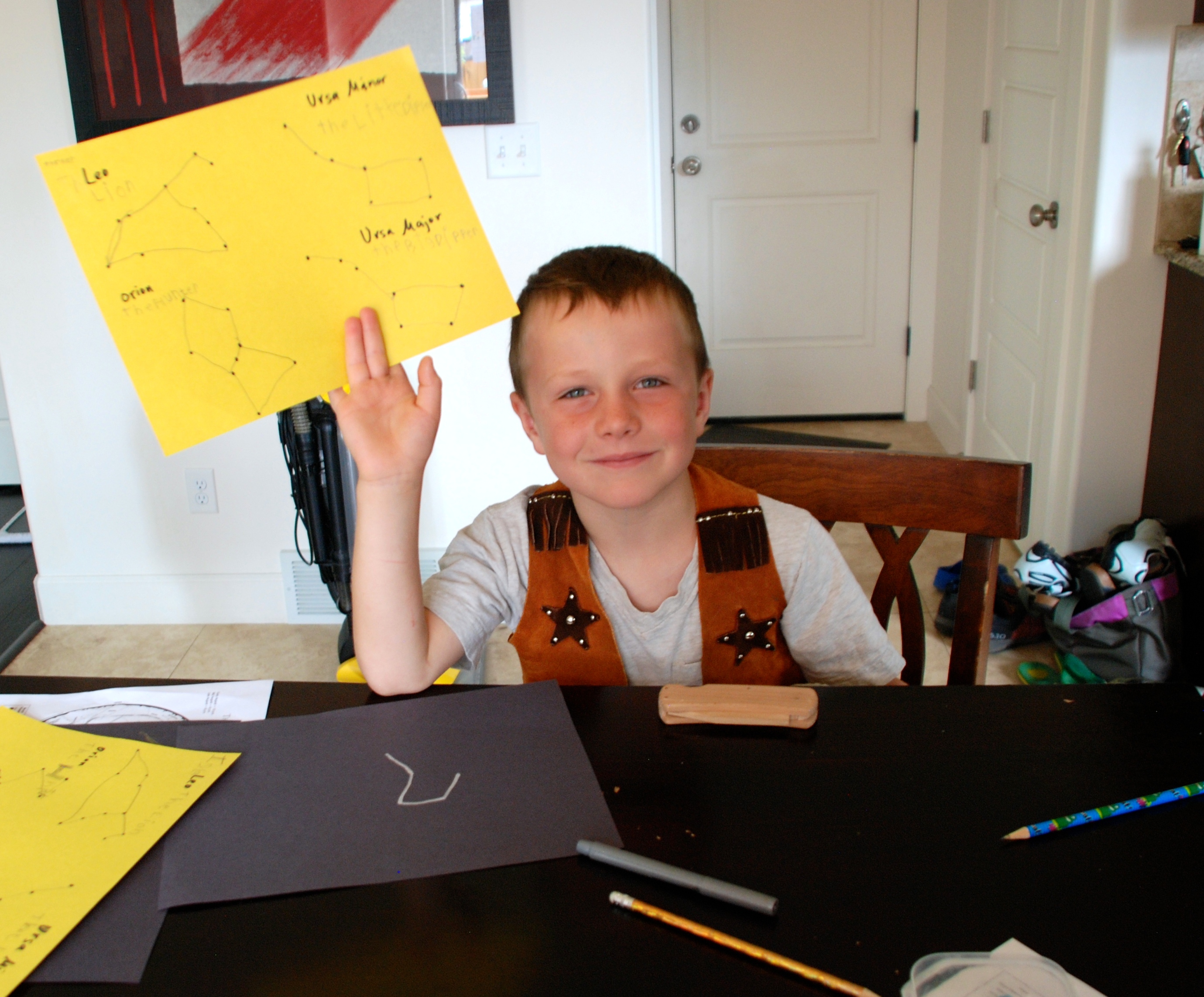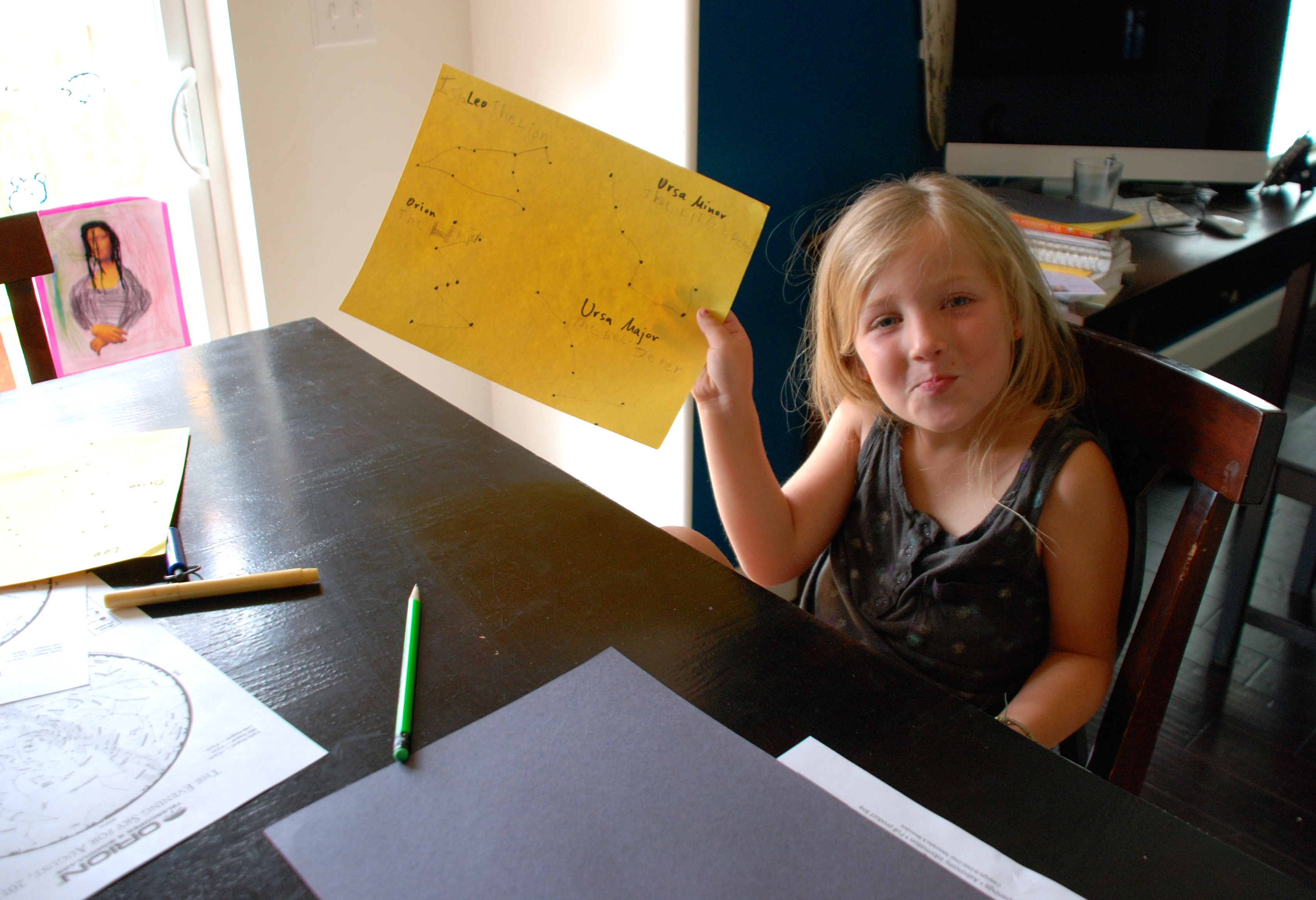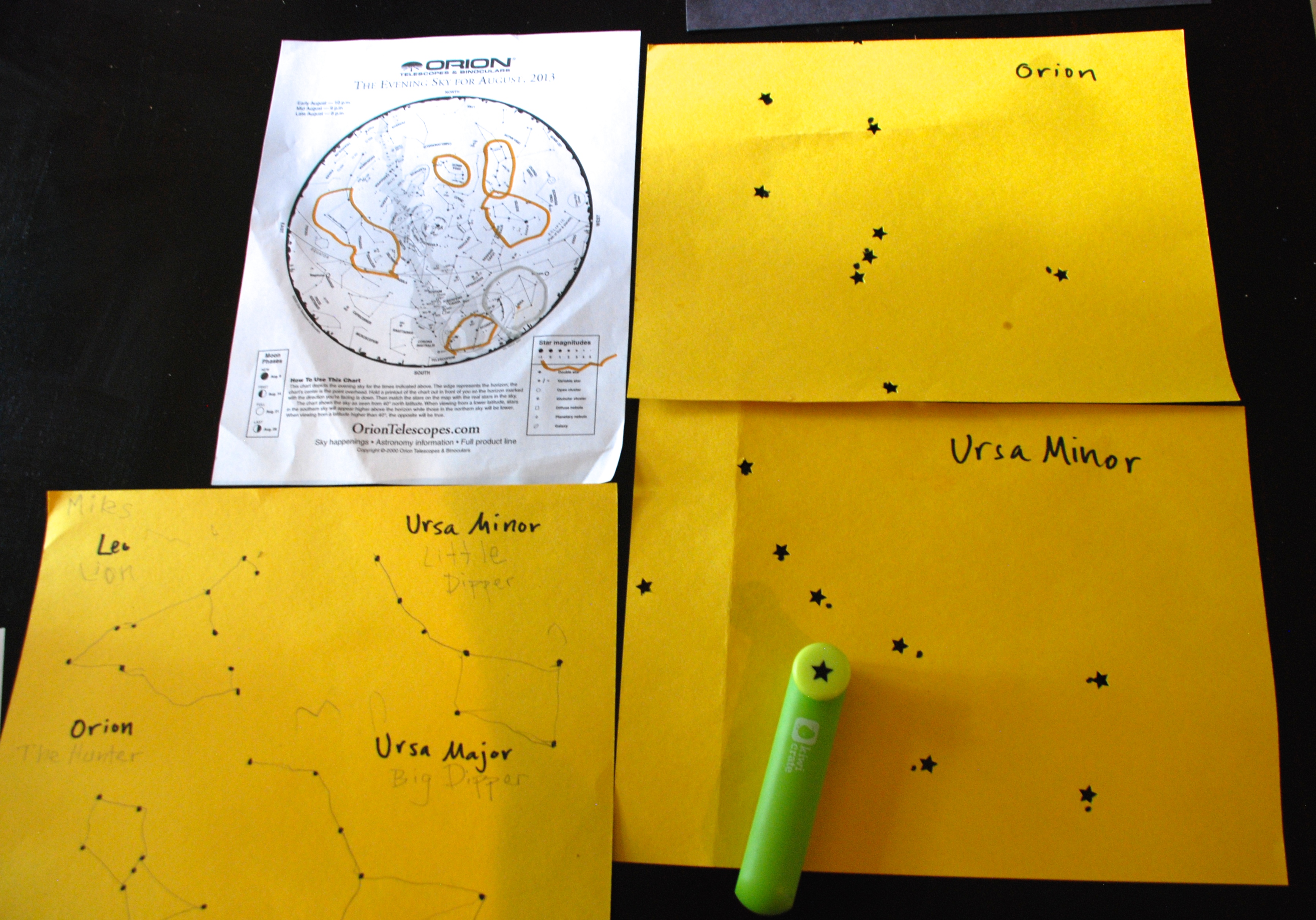Such a great sequence of projects. The kids were interested and engaged the entire experience. I was amazed at how excited they were to pick out some of the current constellations in the night sky from their star charts. They happily sounded out the names of multiple constellations and asked about the meaning of the names and the stories behind these night-time specters.