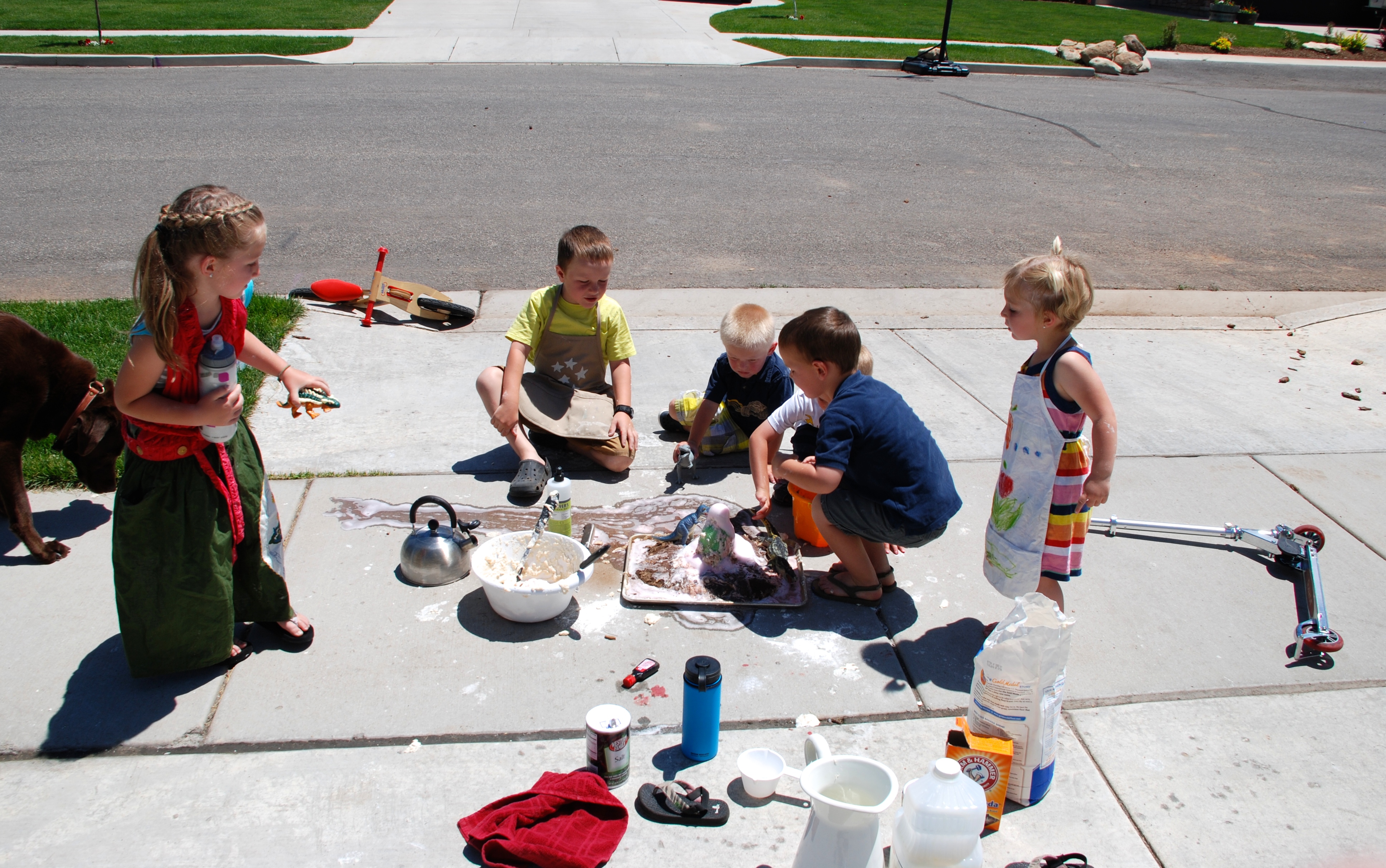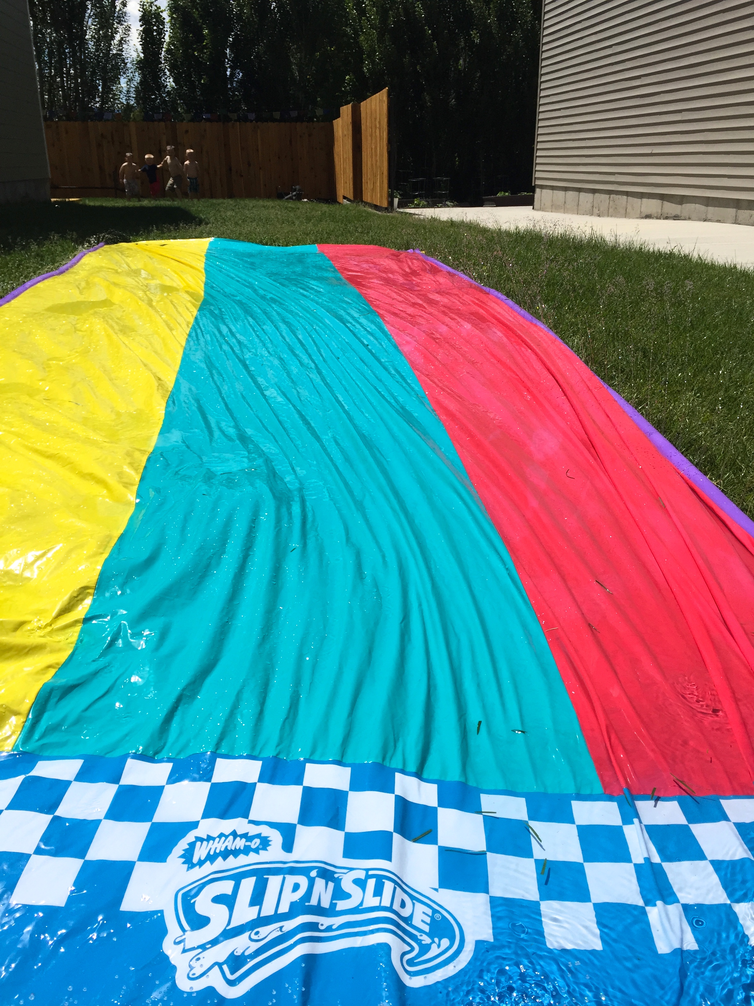 Water sports of every kind from the slip n’ slide, to sprinklers, to water balloons are in full effect. The frogs in the last shot are Miles’ favorite toy. Shiny, cuddly, colorful, filled with tiny beads, specially ordered by our local grocer to make him smile! 🙂 Thank you Lindsay and Rena!!!